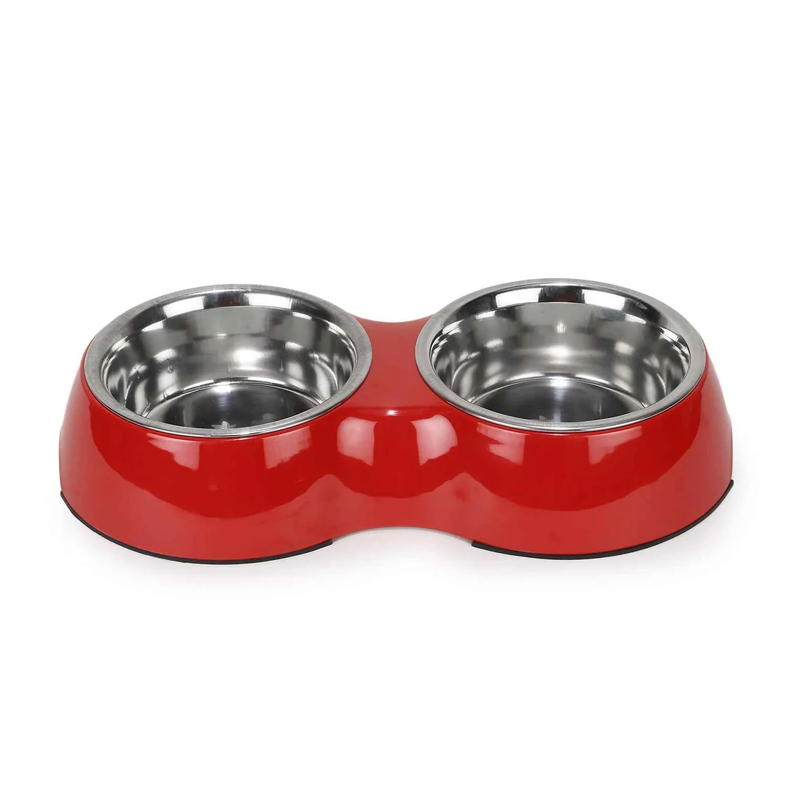 Double Bowl Feeding Set for Dogs & Puppies (Red)