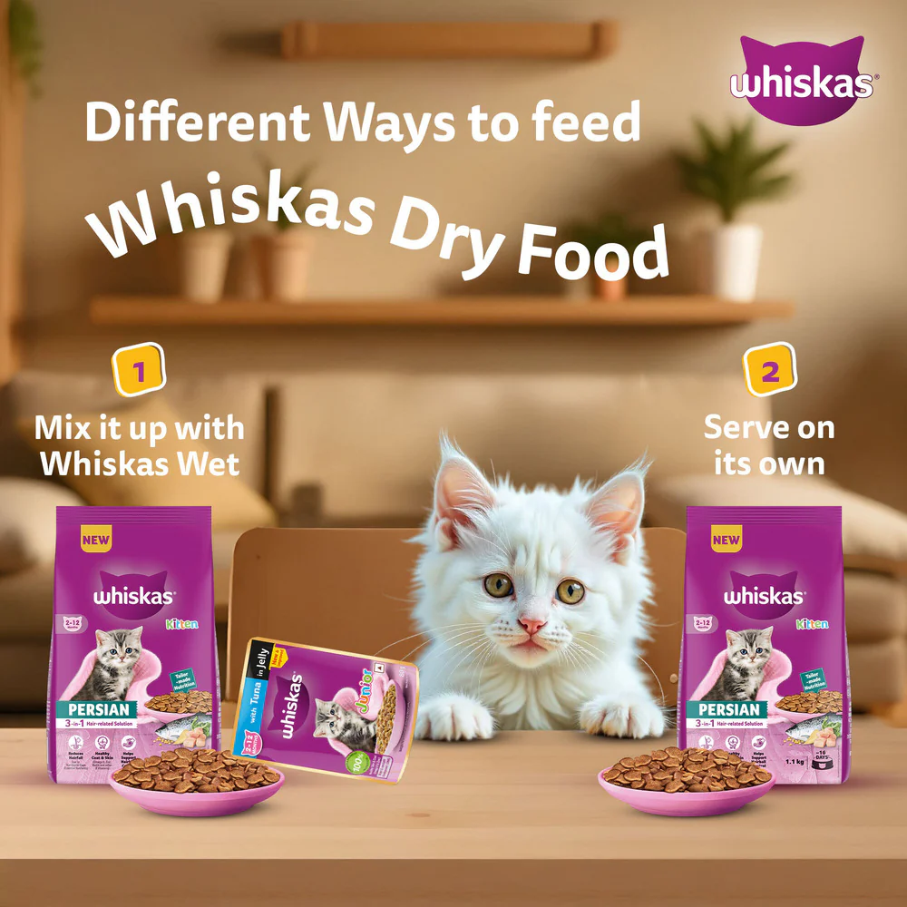 - 100% Complete & Balance Nutrition:Â Whiskas Persian Kitten (2-12 months) Dry Cat Food is specially formulated for Persian cats.
