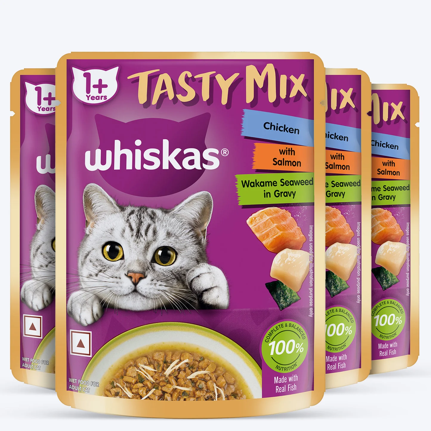 The Whiskas Tasty Mix Wet Food Made With Real Fish (Salmon & Wakame Seaweed) With Chicken in Gravy For Adult (1+ year) Cat – 70 gm Pack from Whiskas is now available on Heads Up For Tails, starting at ₹170 , with a special 15% off for a limited time . We handpick products only from trusted, vet-recommended brands to ensure safety, nutrition, and comfort for your pet — no compromises. As India’s leading pet care destination, HUFT guarantees 100% authenticity, fast shipping, and dedicated customer support backed by real pet experts. Whether it’s food, toys, grooming, or wellness, we bring you products that work — because we’re pet parents too.